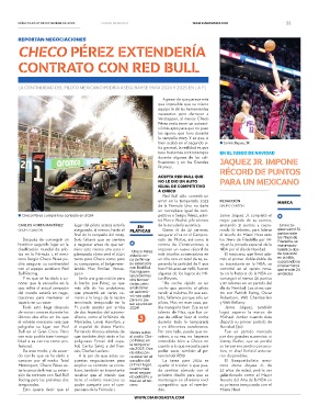 ● Checo Pérez cumplirá su contrato en 2024 petitivo a Sergio Pérez, admi- Jaime Jáquez Jr. completó el