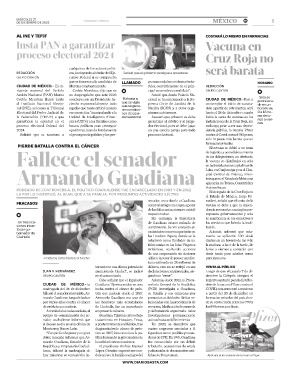 hoy mientras se encontraba in- dolencias a la familia y amigos del tidas por Bancomext. • Aplicará el inoculante de la marca Pfizer
