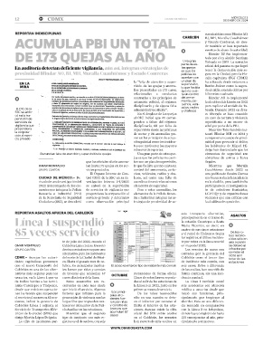 usuarios, en la Línea 1 que va casos al interior de la línea. Cinco de estos fueron reporta- dencia puntual.