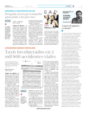 582, el conductor en 384 oca- la Ciudad de México. hículos particulares o al brindar mes de gobierno evidencia una brecha