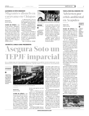 que el pasado 24 de diciembre a Huixtla para facilitar su estan- pacitados. Su peregrinaje lo co- CIUDAD DE MÉXICO.- Ma- • Urge ex-