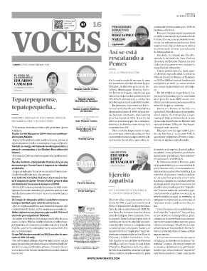 cado en 200 mil mdp. Periódicos de México, A.C. Calle Guerrero Núm. Chiapas y la Selva Lacandona, inclu- Tal vez sea momento de recuperar