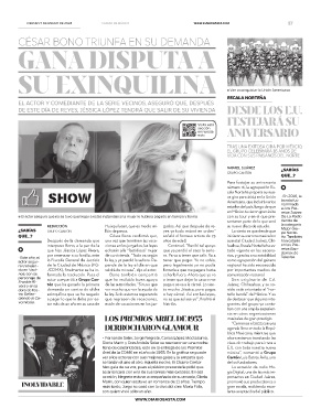 do en Veci- JCDMX), finalmente se ha in- saldrá de mi casa”, dijo el actor. forzarla a que me pagara hasta por importantes medios de