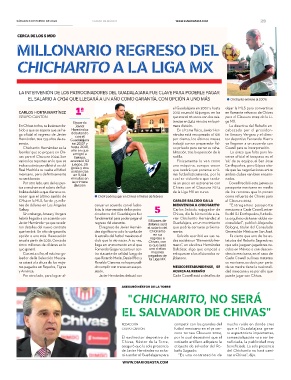 nocer que el último sueldo de ● CH14 podría jugar en Chivas a finales de febrero como refuerzo de Chivas para