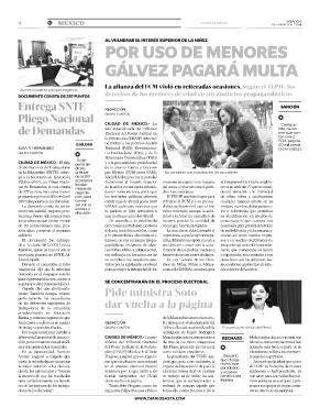 secretario general del SNTE, Al- sin embargo, en los anuncios no tutores de los menores aludidos. o reputación, sea contrario a sus