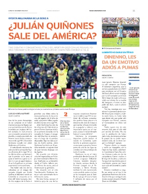 Quiñones y el América. Quiñones fue titular en 18 par- cia europea y pasaría a formar “Gracias afición, su respeto