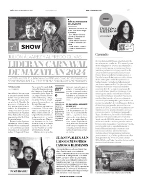 LA FIESTA MAZATLECA, DENOMINADA ESTE AÑO COMO ECLIPSE BARROCO, de la CDMX, pues ahí se han presentado