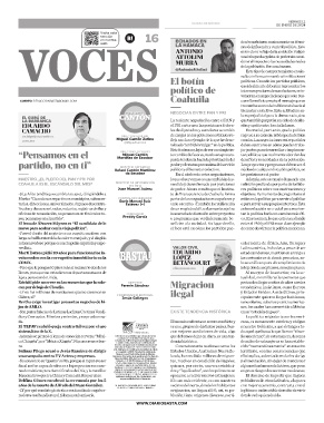 COAHUILA ES EL ESCÁNDALO DEL MES? DIRECTOR DE INFORMACIÓN medida y desenfrenada por posiciones refl exión profunda por parte de los líde-