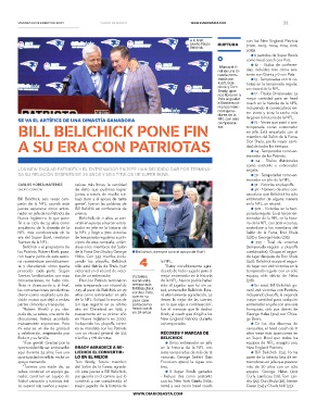 flicto ni desacuerdo y, al final, esta temporada con récord de temporada sido el jugador que fui sin us- ● En total, Bill Belichick ge-
