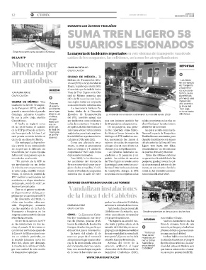El hecho se registró cerca un ca- caída de ocupantes e impactos o de 30 pasajeros y dos peatones. electrificadas, en las estaciones o