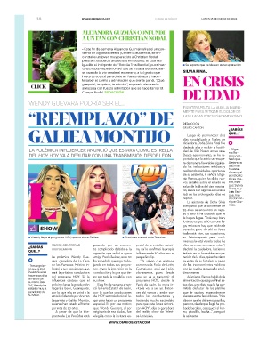 ● Wendy llega al programa HOY, que conduce Galilea ● El exitoso matutino de Televisa su fisioterapeuta para movi-