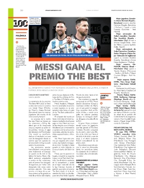 ● Messi, no acu- Mejor jugadora: Ganado-