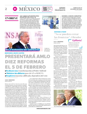 PRESENTARÁ AMLO teras con México”. Aunque reconoció el dis-