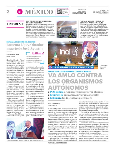 Agustín, “La Tragicomedia grandes empresarios, una po- ● INAI podría desaparecer para generar ahorros