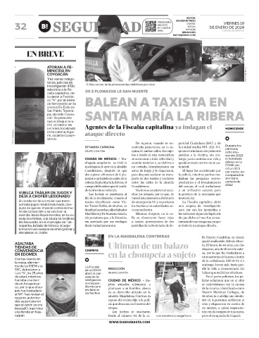CIUDAD DE MÉXICO. - Ma- se acercaron a toda velocidad y bargo, ya no contaba con vida y el homicidio