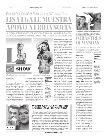 ● Frida Sofía le “sacará brilló al piso” ● Lis Vega, la cubana de fuego tienen porque drogarse, ni to- cia penal por discriminación, tamento