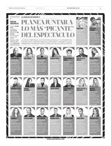 Medio de difu- ARRANCARÁ EL PRÓXIMO MARTES 23 DE ENERO Y PROMETE ALZAR sorpresa al reality; le conoce por ser