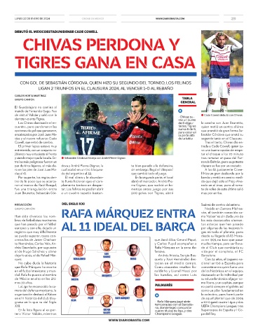 de visit al Volcán y salió con la • Chivas su- ● Cade Cowell debutó con Chivas