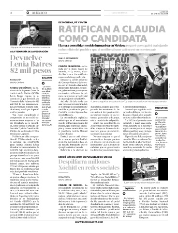 ca, como señala el artículo 127, de la SCJN mundo, que enarbolan princi- México hay libertad de expre- ción a ser parte de la historia y Ebrard, pe-