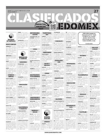 SERVICIOS ejecutivos EDOMEX precios ra- propiedades de Edo. to, $180,000, el resto con mobiliario y mer- TECÁMAC Informes 55-6027-