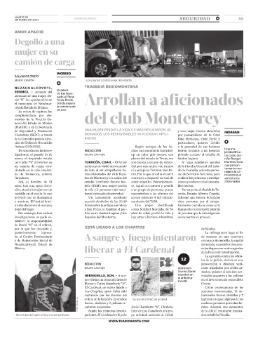 investigaciones se pudo es- Rayados del Monterrey. hay otros 5 heridos, 4 hombres se encuentra en proceso.