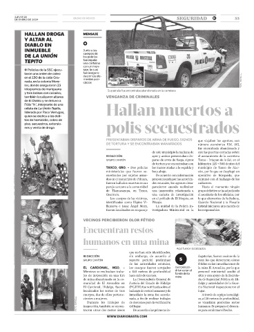 EL CARDONAL, HGO. - los cuerpos fueron arrojados cuerpos po- la mina El Arenalito, por lo que