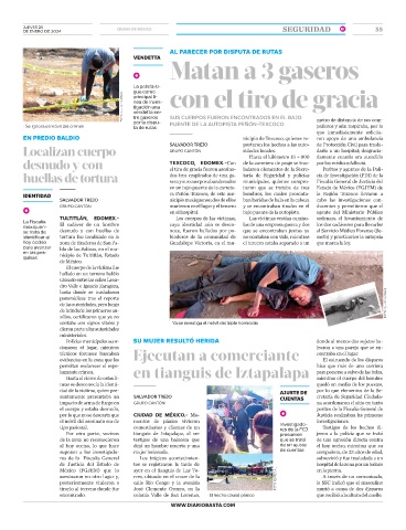• Se ignora el móvil del crimen tre gaseros SUS CUERPOS FUERON ENCONTRADOS EN EL BAJO metro de distancia de sus com-