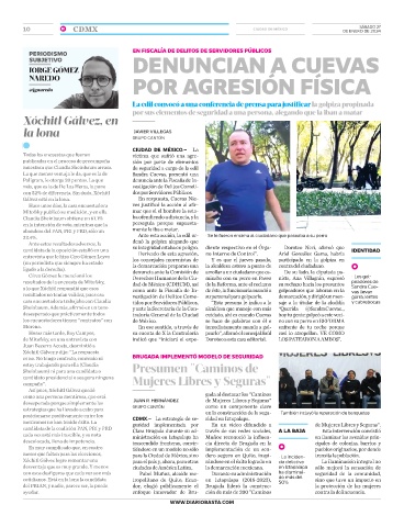 a lo que Xóchitl respondió que esos como ante la Fiscalía de In- de éste, la funcionaria mandó a golpeadores que laboran en la Sandra Cue-