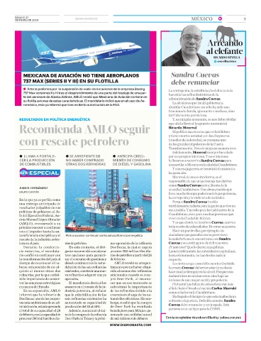 te del aeronave de Alaska Airlines, AMLO reveló que Mexicana de Aviación no tiene en administración de Sandra Cuevas.