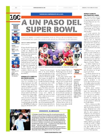la AFC. Mientras que San ● Este domingo se conocerá a los equipos que disputarán el Super Bowl peonato de la NFC, por ter-