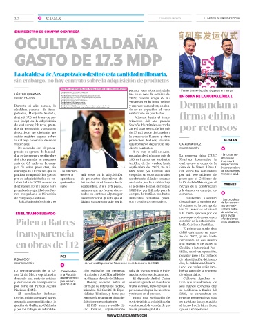 día, entre enero y septiembre potzalco destinó poco más de La empresa china CRRC • En unas se-