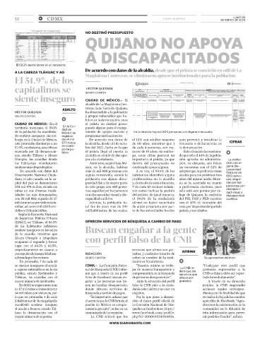 lidades los más denunciados, con discapacidad visual y dis- del priísta; de igual manera, bajo de Quijano, la coalición discapacidad