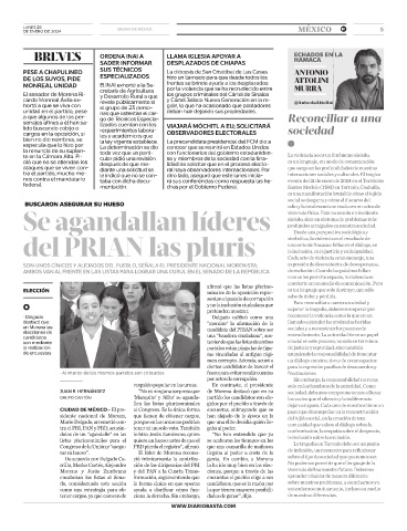 MONREAL UNIDAD El INAI exhortó a la Se- frentes se brinde ayuda a los desplazados MURRA
