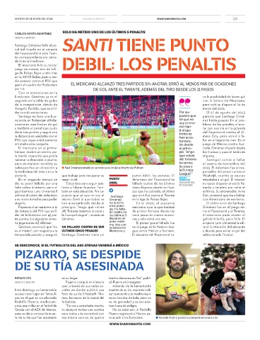 dio su penal fallado por una "Estoy listo para seguir ade- DEBIL fallado cuatro de los últimos ATACANTE DEL no quiso disparar al estilo Pa-