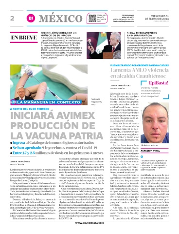 ●Entre 1.7 y 2.5 millones de dosis en los primeros 3 meses del Ejecutivo destacó la im- AGRESIÓN VIRAL