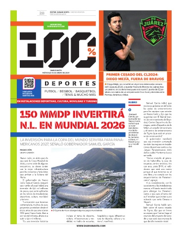 150 MMDP INVERTIRÁ •Samuel para los equipos que estarán