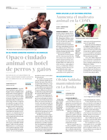 EN SU PRIMER SEMESTRE HOSPEDÓ A 88 ANIMALES conciencia en la población. lidera con en las 16 alcaldías capitalinas,