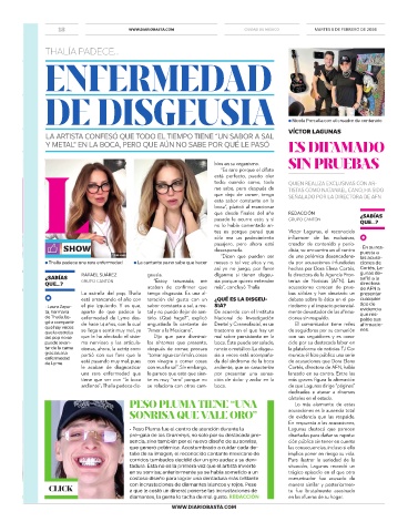 ardiente”; Thalía padece dis- se relaciona con otros cam- boca. de que Lagunas dirige “páginas”