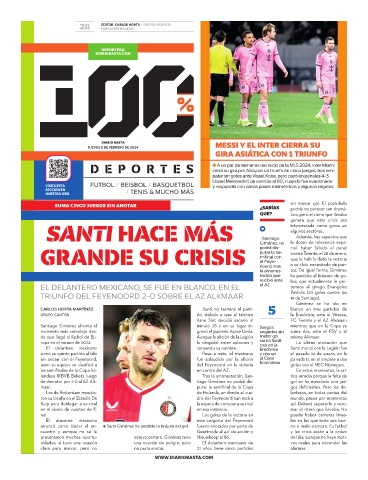 CARLOS HORTA MARTÍNEZ Santi, no terminó el parti- 5 blanco en tres partidos de