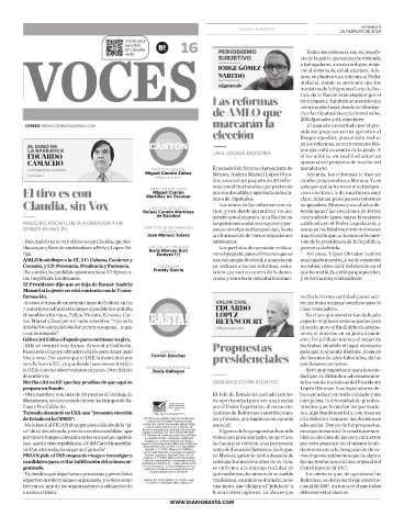 Claudia, sin Vox Los temas de las reformas son va- se aprueben, Morena y sus aliados de-
