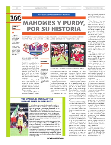 mercial, el nuevo Brady. Tiene ● Brock Purdy y Pat Mahomes tendrán un duelo por la gloria tes en los playoffs, por primera