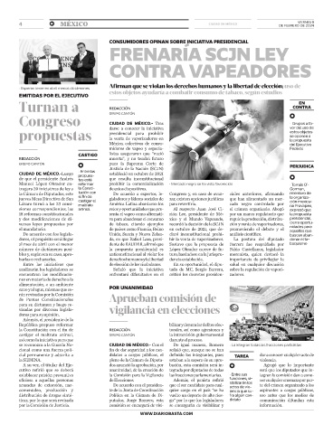 y dos modificaciones de di- va para abandonar el consumo xico y el Mundo Vapeando, regule la producción, distribu- presidencial,