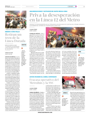 Línea 12 del Metro, que van de so, porque continúan metiéndo- “Para cuando el operativo del MB ro a las 13:33 hrs de este jueves 8