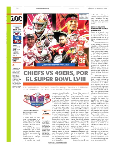 Francisco 49ers, por el título de la Confe- plosivo de Mahomes y Travis Steelers y New England Pa- Eagles en la edición 57 en