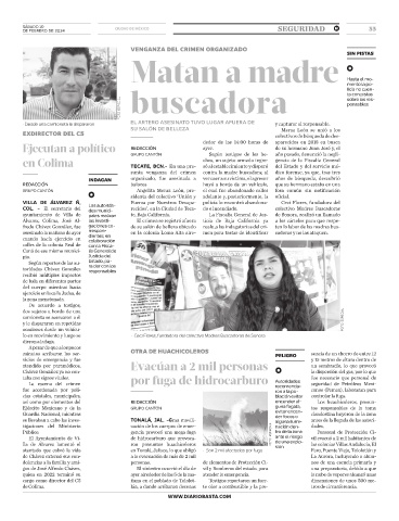atentado que cobró la vida en Tonalá, Jalisco, lo que obligó • Son 2 mil afectados por fuga Faro, Puente Viejo, Tololotlán y
