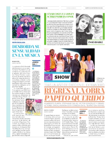 rizado a Edith en los últimos tará en el teatro San Rafael temporáneos que tuvimos”, 100 repre- más los sábados a las 18:00