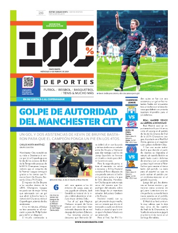 UN GOL Y DOS ASISTENCIAS DE KEVIN DE BRUYNE BASTA- Fecha: de Ida de los octavos de final