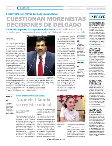 senador por Durango quien se quejó del dirigente nacional del partido bó, reformar el Artículo 2