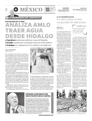 “ojito” del presidente, la conferencia no tardó en •Los nuevos pozos de Tizayuca son clave “Durante este perio- desde Estados Unidos a