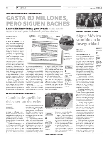 de pavimentación y bacheo. una solicitud de nente del Congreso capitalino, Héctor